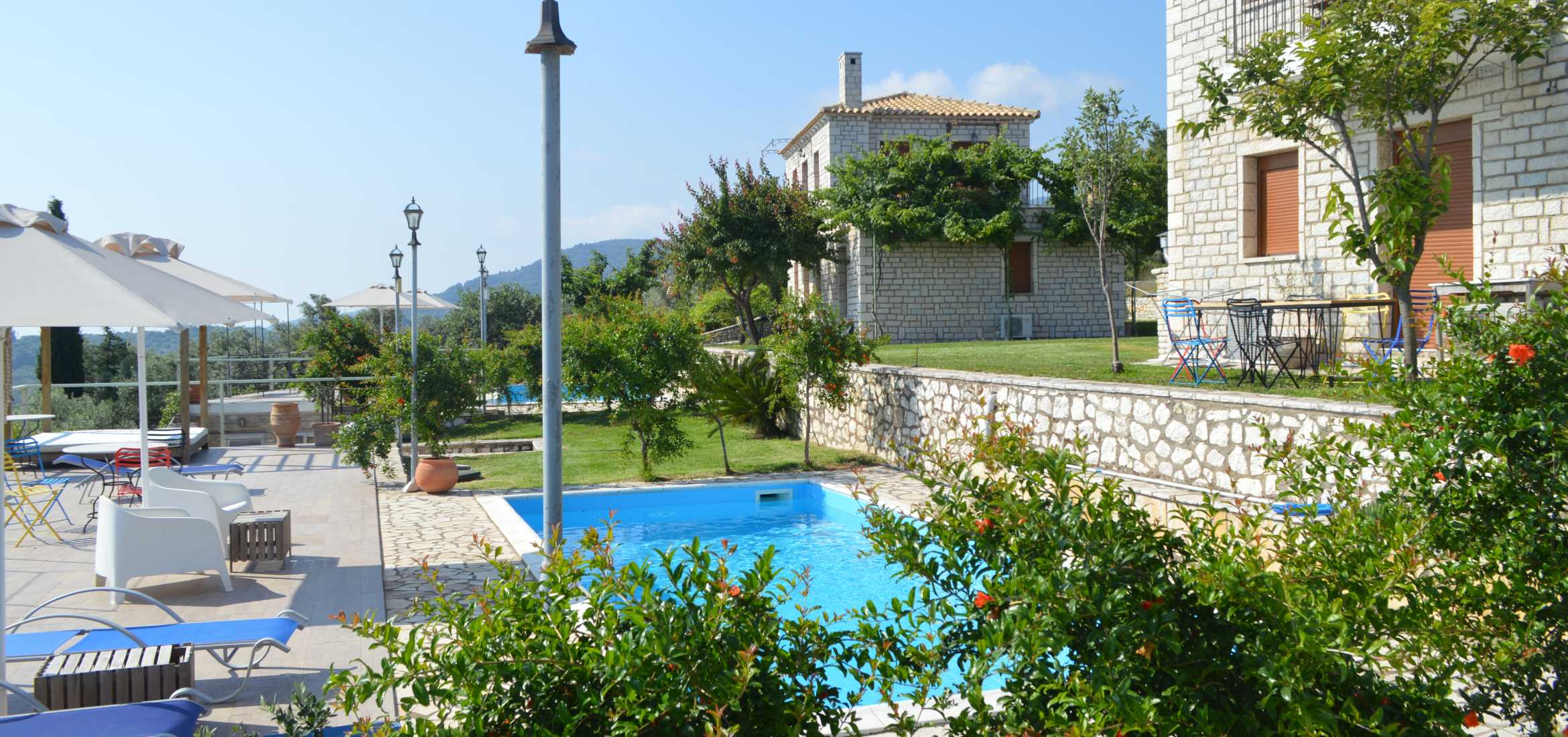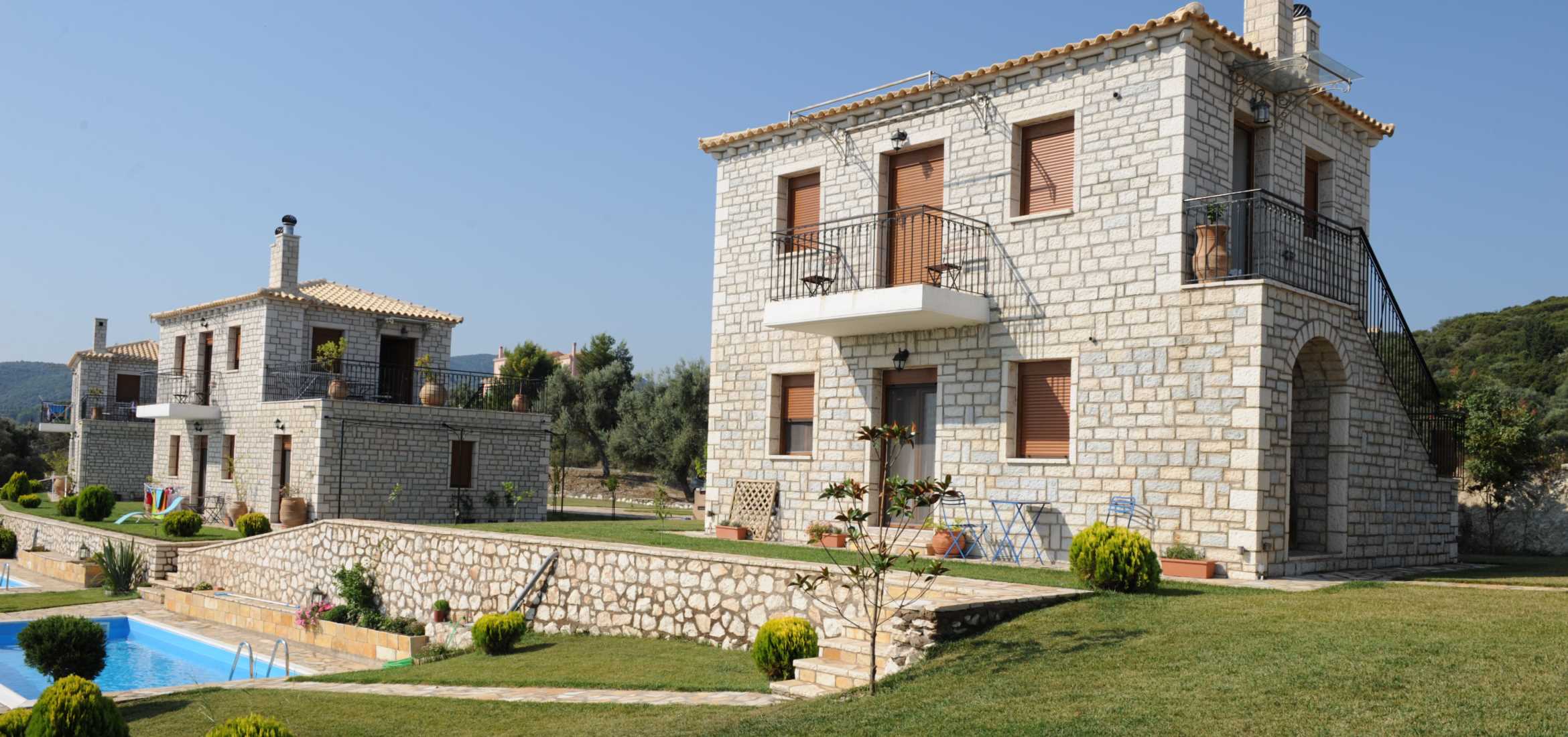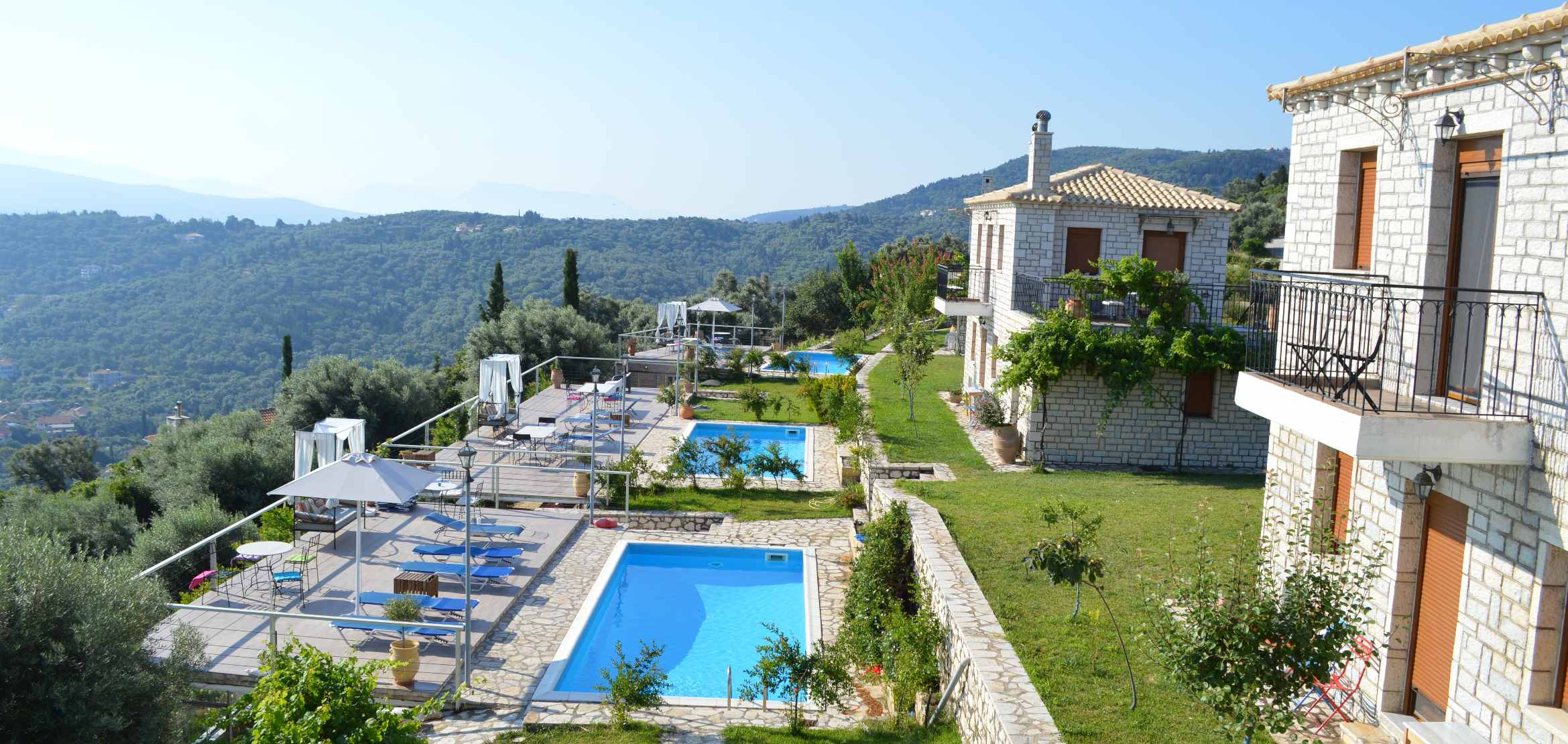 Villas Panorama composed of four independent stone villas accompanied by one Mill and one Suite. Villas Panorama is made by the traditional architecture of Lefkada, decorated and furnished with a modern style with colors and materials fully harmonized with the environment and adapted to the modern requirements. The Villas are surrounded by beautiful gardens, olive and paved paths that lead the visitors and invite him to experience unique moments, relax and enjoy the beauty of the surroundings of the complex of villas. We are located very close to the city center –only 3.5 km- which means that all the amenities of the city (bars restaurants super markets e.t.c) are very close and at the same time the location is really quite since it is located away from the main roads and the city. The complex is ideal for people that are travelling in groups since we the capacity of accommodating up to 11 families with kids.